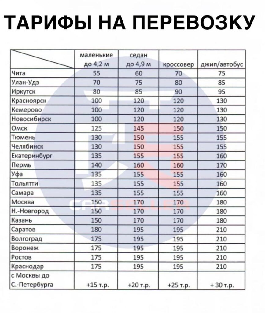 📂 Ниже таблица с актуальной тарифной сеткой, где вы можете посмотреть цену доставки до вашего города.